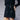 A sleek black ensemble featuring a long sleeved top with metallic eyelet details and a V-neckline, paired with a matching mini skirt adorned with eyelets for an edgy, modern look.