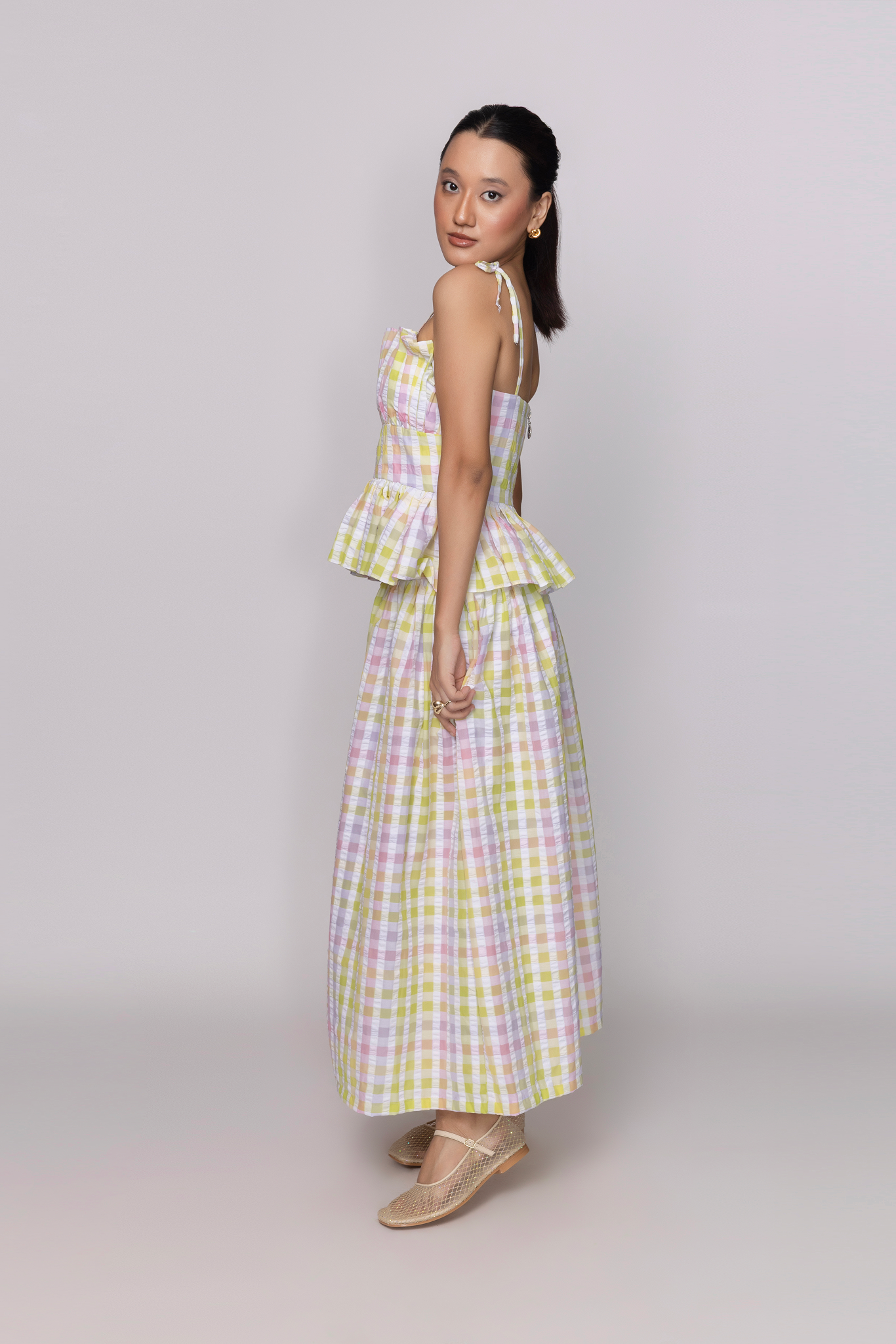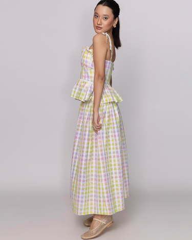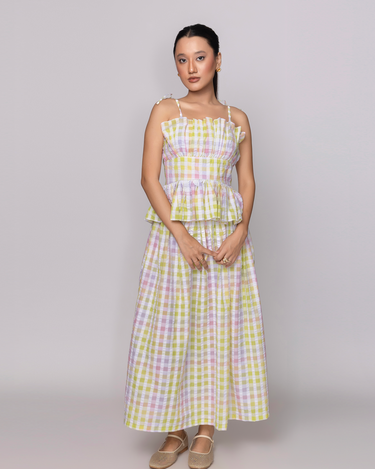 Soft pastels and playful ruffles.This gingham dress is sunshine in wearable form.